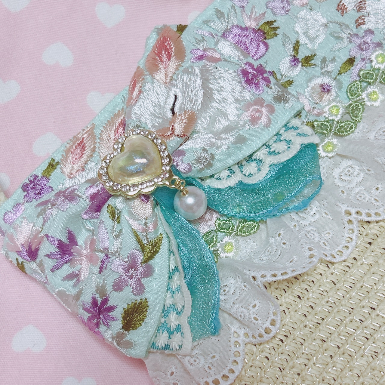お昼寝しているうさぎさん柄のインド刺繍リボンを贅沢に使いました。
